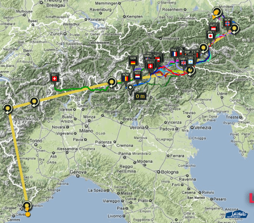 My rash prediction is that he’ll reach Monaco before any other competitors reach turnpoint 6 (Matterhorn). Ok, well, that might sound ridiculous, but he’s got 356km to go to Monaco, and his nearest rival, Toma Coconea (ROM) has got 219km to go to TP6 so I don’t think it’s beyond the realms of possibility!