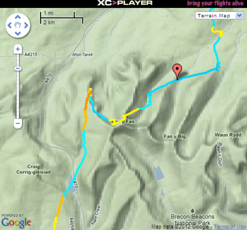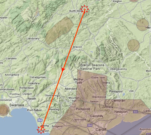 Now I knew from studying the route beforehand that the direct line to Porthcawl took us just to the west of Pen-y-Fan, so as we drifted south of Brecon I realised that we could use the Beacons to make some significant progress crosswind, unless of course we found a boomer that took us right over them in the meantime.