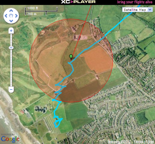 [edited 30/4/2012] So had I declared the flight correctly then with the 1.35 multiplier added onto the 80km declared task I would have scored 105.9 in the league, making it a sneaky one hundred, but due to my piss poor planning (ironic after my talk 🙂 ) it scored 87km as a standard turnpoint flight.