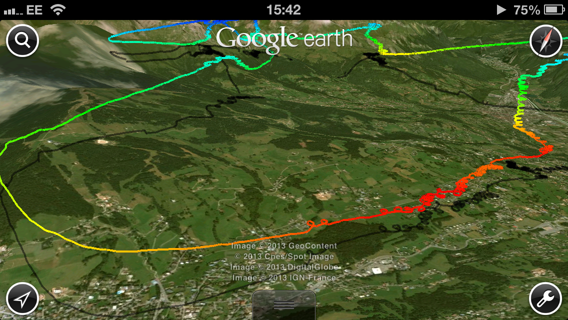 I could have stayed up there soaring above the cliffs for ever, but after 4.5 hours flying I figured it was probably time to land for a beer and find out how Pete and Guy got on. After a suitably refreshing debrief we set off for Chamonix and headed straight to the Jeckell & Hyde restaurant for much needed sustenance, followed swiftly by the obligatory downloading and uploading of tracklogs, then bed!