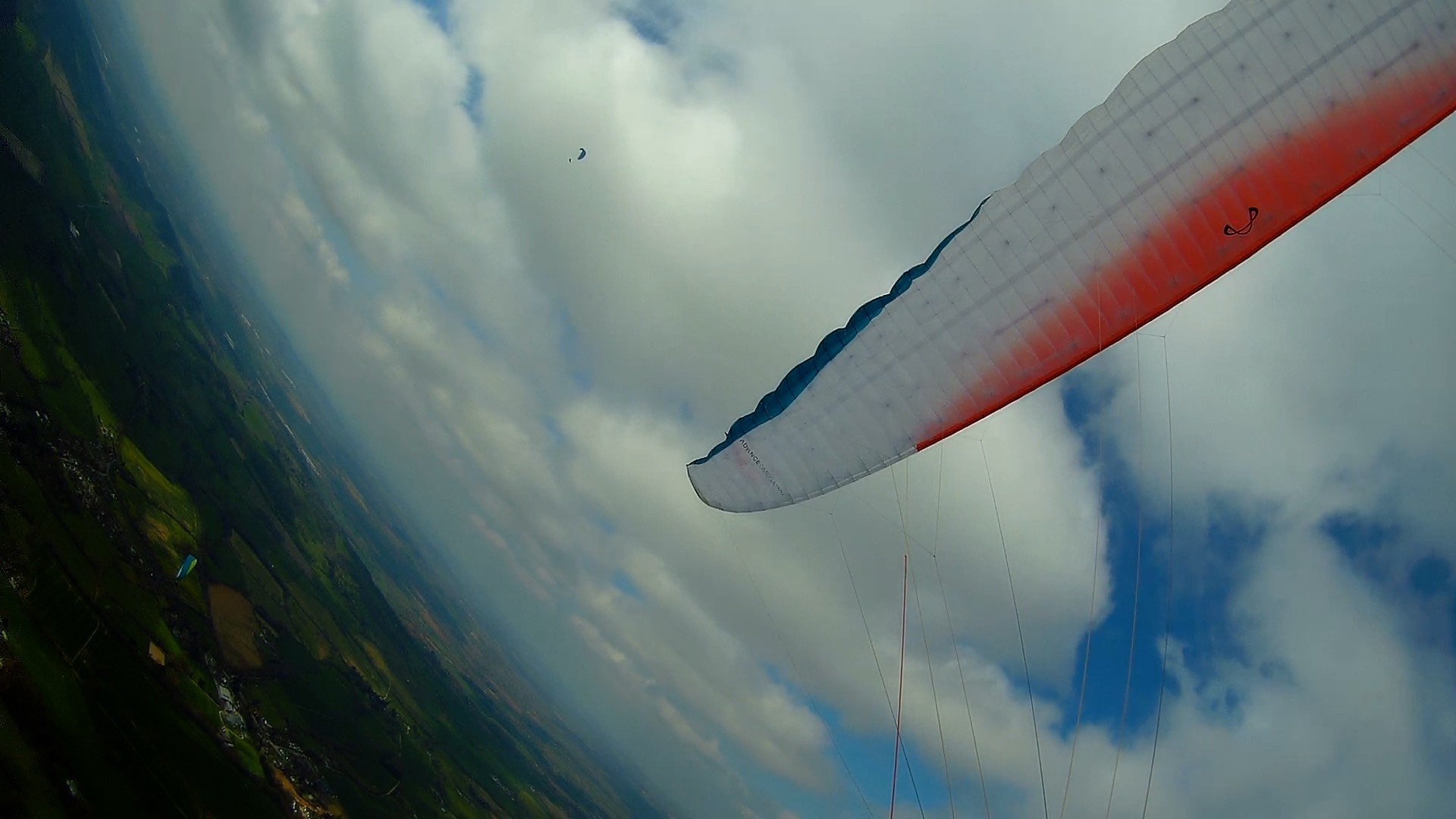 Having been unable to get out to play the day before (I had to content myself with flying vicariously via xcrt.aero), so I was keen to make the most of a pretty good forecast for Friday and lift-sharing plans were duly made, and James, Tom and I arrived at the “Kettle Sings” takeoff on the Malvern Hills at 1130 where we joined a good crowd of hopefuls already setting up. Rupert Firkins was first off showing us that it was working nicely…