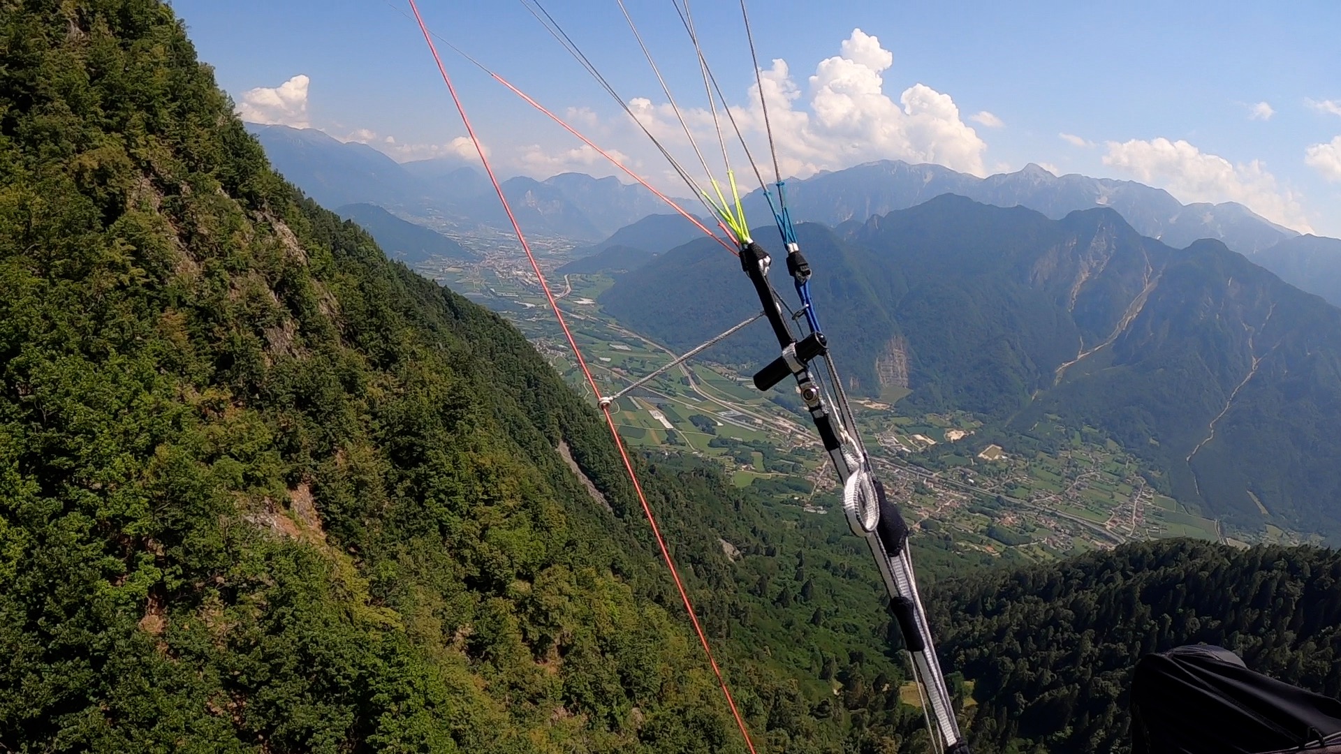 It was plain sailing for the next 20kms, but the trouble was that the 2200m cloudbase was down to 1600m by this stage, and it just wasn’t high enough to let me progress further towards Feltre, which was only 15kms away. Instead I turned 90deg to the south and landed near Primolano, but not before I’d had a couple of decent sized collapses as I tried to push SE along the valley that eventually leads down to Bassano del Grappa.