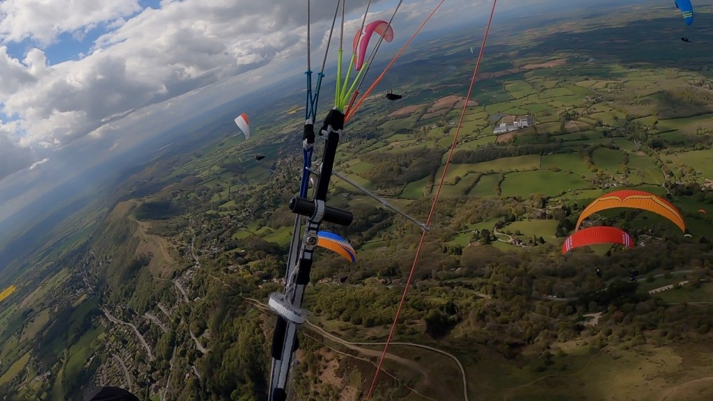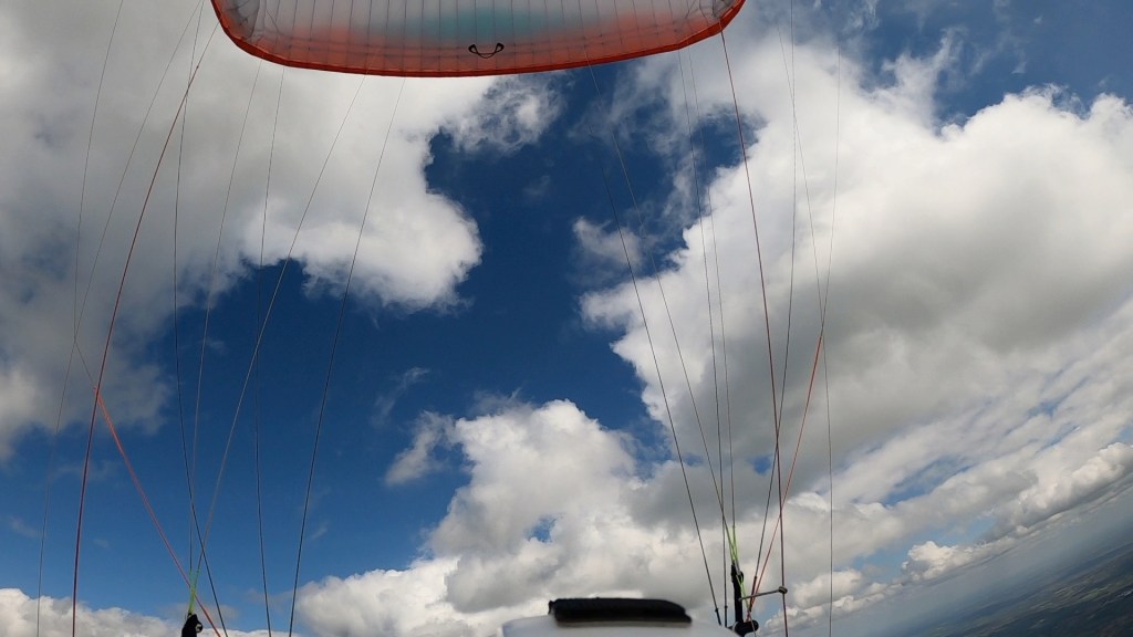 I took off at 1116 but with the combination of busy skies and large amounts of cloud shadow it wasn’t until midday that I was in a good enough climb to leave the hill with a couple of others.