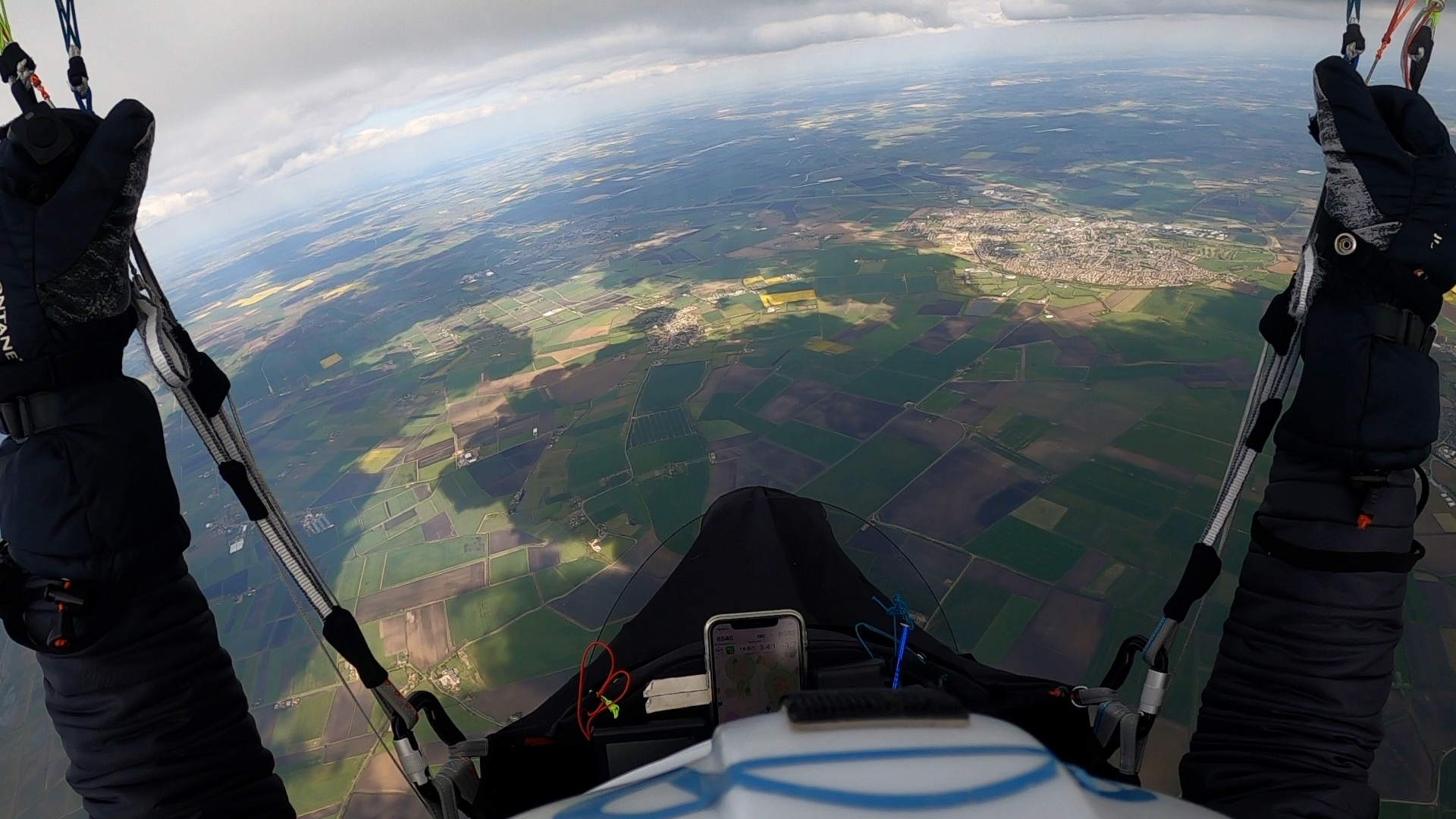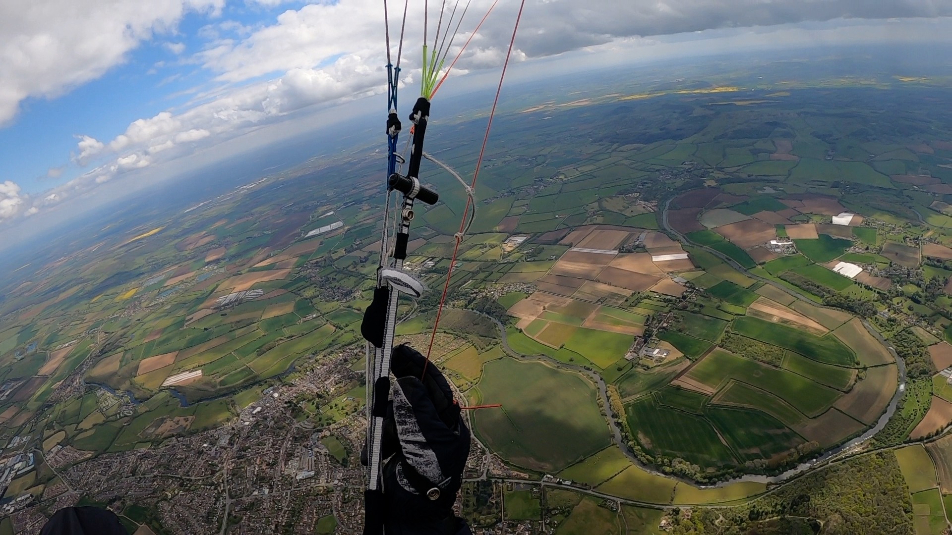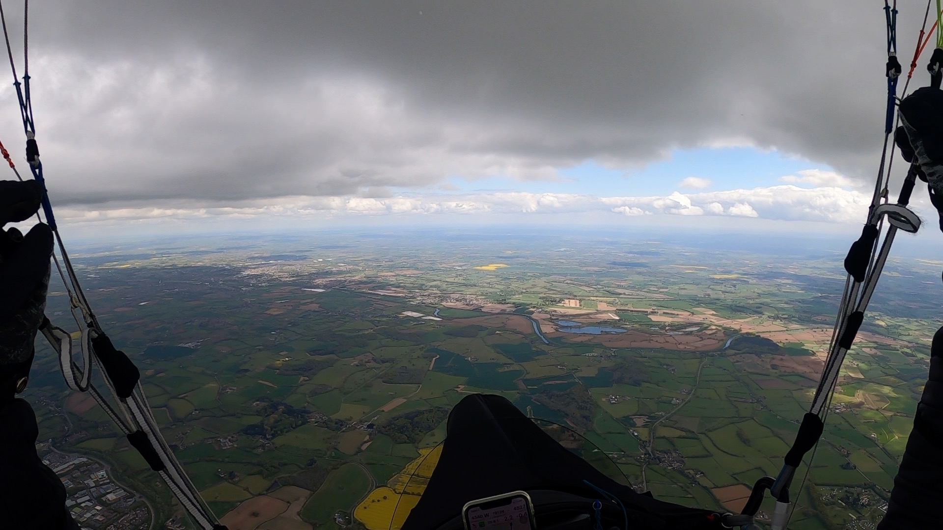 I headed towards the brown fields on the far side of the River Severn and was rewarded with a gentle climb up to 4800’. The other pilots who left the hill a bit lower than me didn’t connect with it and ended up landing a little further on, so I tried (and failed) to catch up with Greg Poole who was a few kms ahead of me at this point.