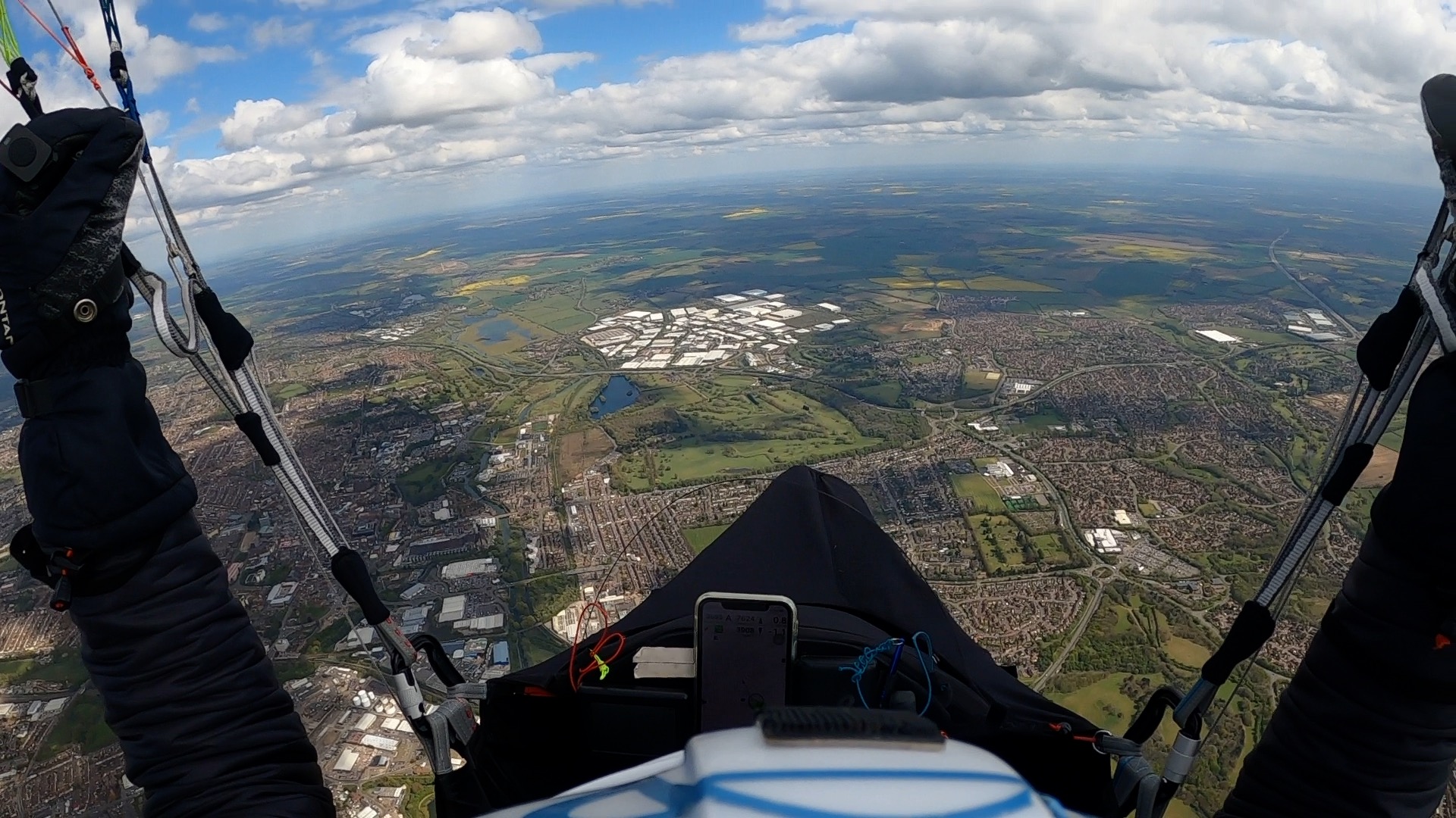 The 35kms spent under the 4500’ airspace was definitely the trickiest part of the flight, so it was a massive relief to get under the FL75 airspace as I approached Northampton! Only trouble was I was down to 2500’ again!