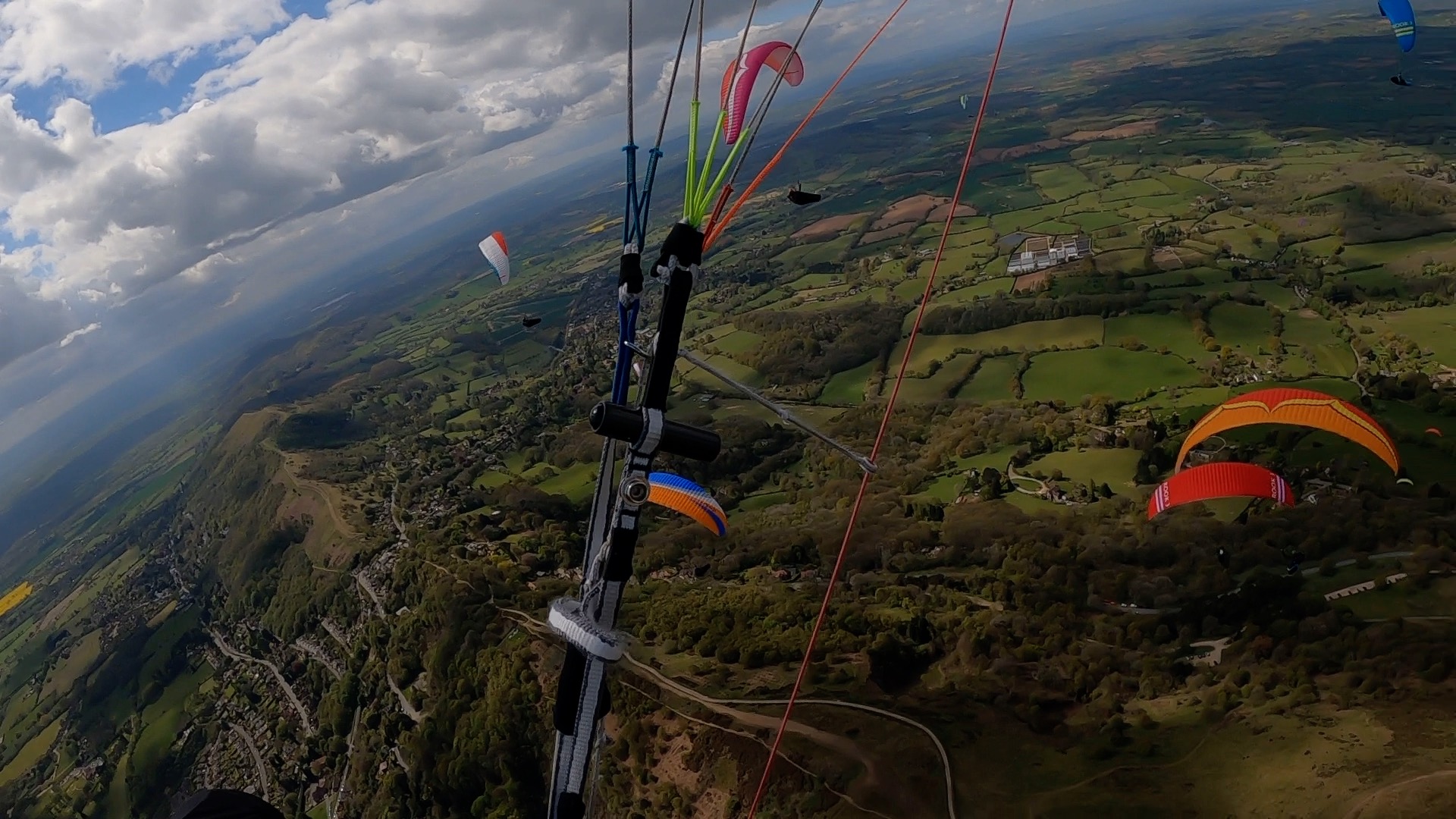 I took off at 1116 but with the combination of busy skies and large amounts of cloud shadow it wasn’t until midday that I was in a good enough climb to leave the hill with a couple of others.