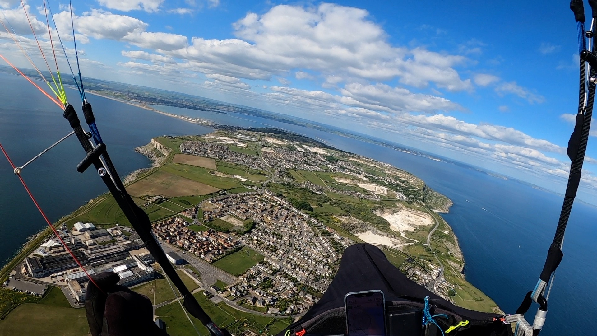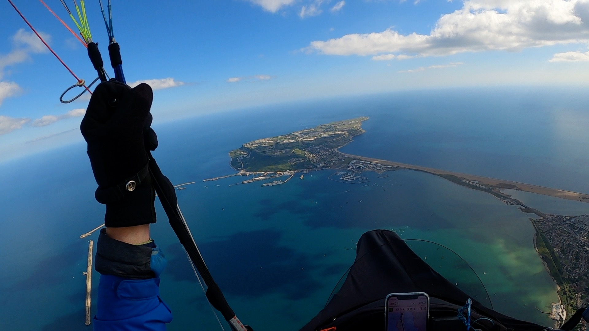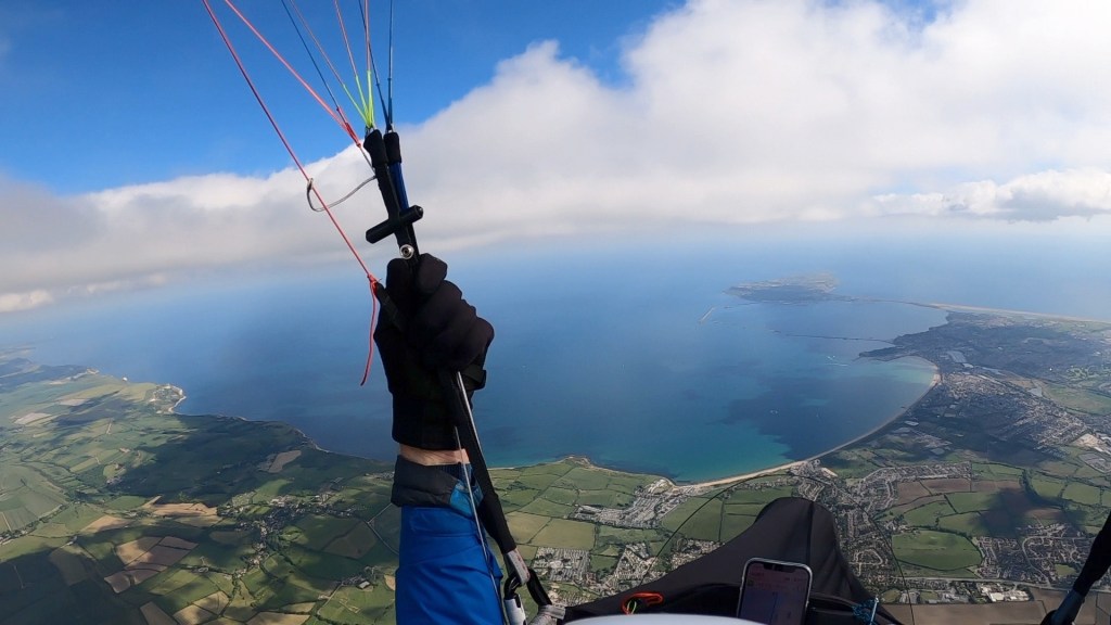 So now I had a decision to make – whether to fly straight to Ringstead to meet Lisa there, or to push the boat out (hopefully I wouldn’t need it!) and try to fly the 20kms to Portland Bill. In the event it wasn’t actually a difficult decision to make with clouds popping up ahead of me…!