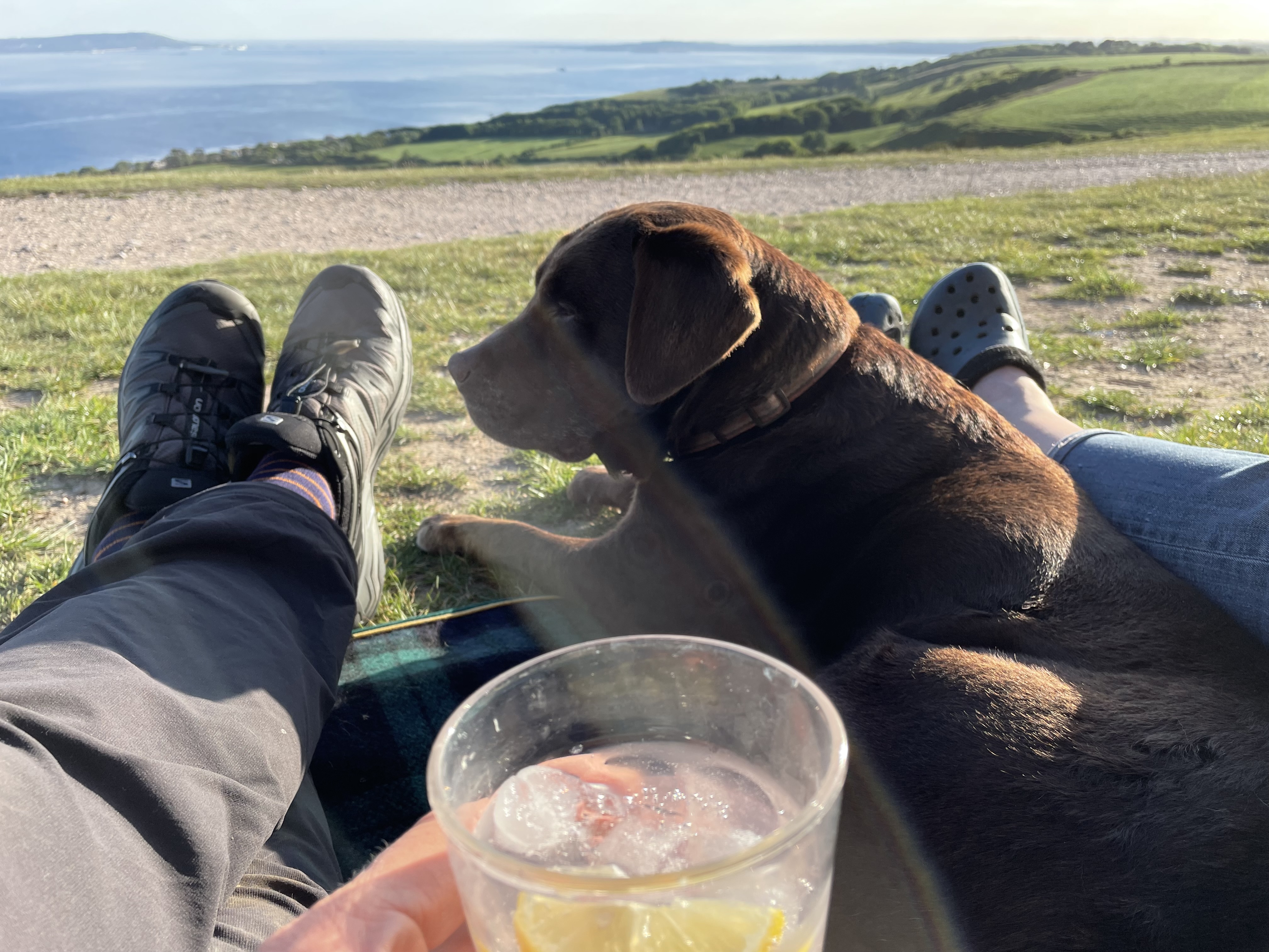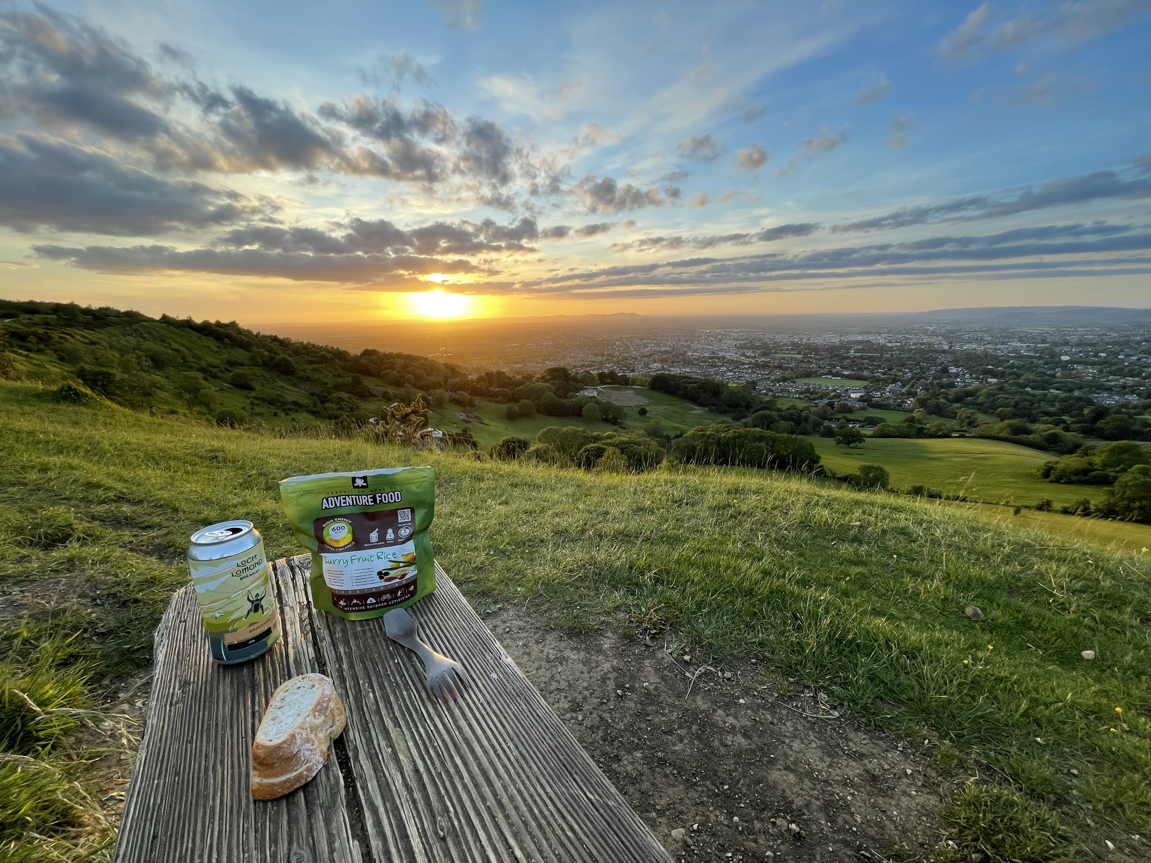It’s the afternoon of Friday 27th May and my grown-up daughter and some of her friends are taking over our house in Bath for the weekend, so Lisa and I have found ourselves temporarily homeless! Well, not that homeless fortunately as Lisa’s driving down to Ringstead (near Weymouth) in our campervan, and I’m making my way to Leckhampton Hill (near Cheltenham) by foot and train with my volbiv gear. We both arrive at our respective destinations at about 1930 and post the obligatory sunset photos on our family Telegram group – my son replies dryly “spending some time apart are we?” Not too long apart if all goes according to plan, which is for me to fly the 140kms down to Weymouth to meet up with Lisa the next day… what could possibly go wrong?!