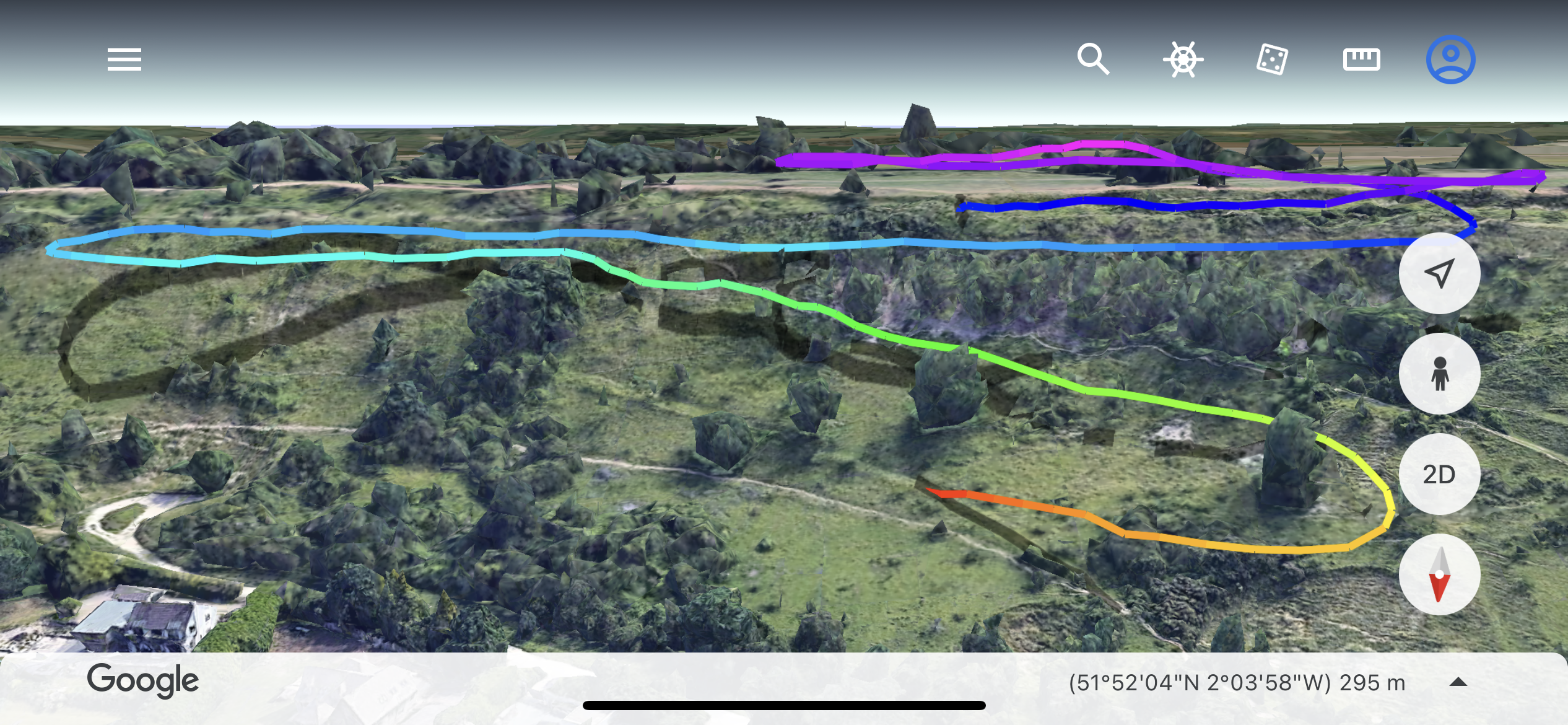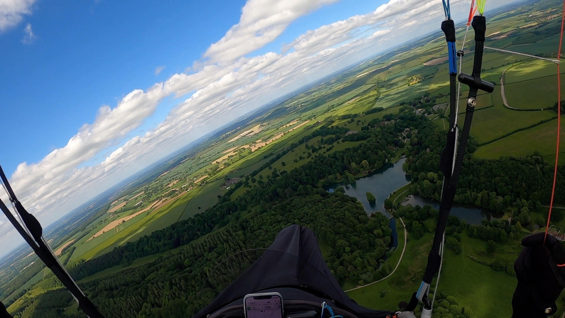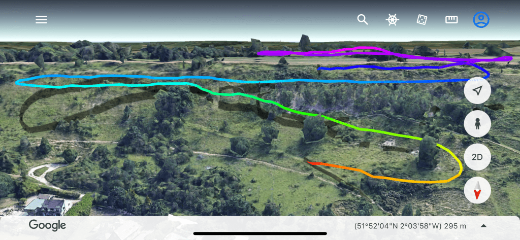 I’ve had low saves over pig farms before, so in the absence of any other options (ie. sunshine, birds climbing etc), I headed over it, and sure enough a scrappy climb took me from 900’ agl back to a comfortable 3000’ amsl. Adam and Zsolt joined it lower down but Zsolt never really connected with it and landed shortly afterwards. I drifted towards Frome to hopefully find a stronger climb and sure enough a few minutes later I was back up at 4800’ amsl. But damn, there was a big blue hole in front of me and 10kms later as I approached Stourhead House and Gardens I was praying for low save #5!