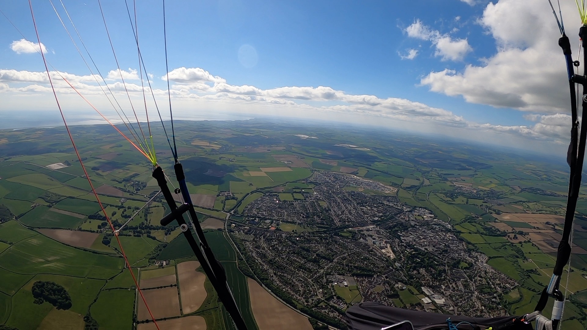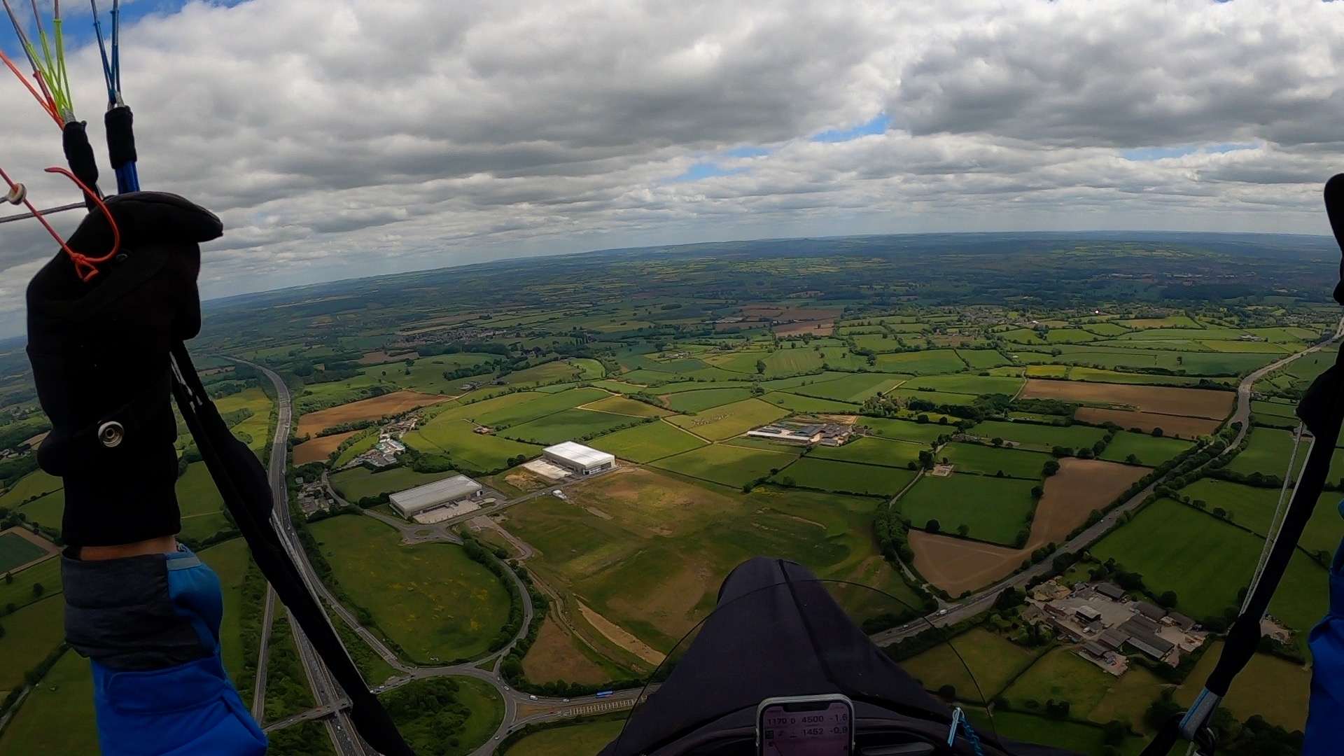 I decided to leave the other guys and push on towards some sunshine just to the SE of M4 Jn17, and after a brief hunt found a climb that took me up to 4800’ amsl, my highest so far. The next 16kms were plain sailing, passing Chippenham, Melksham, Bradford-on-Avon and Trowbridge never getting below 3000’ amsl. I think Rafal had landed by now, but Adam and Zsolt were hot on my tail, half a thermal behind.